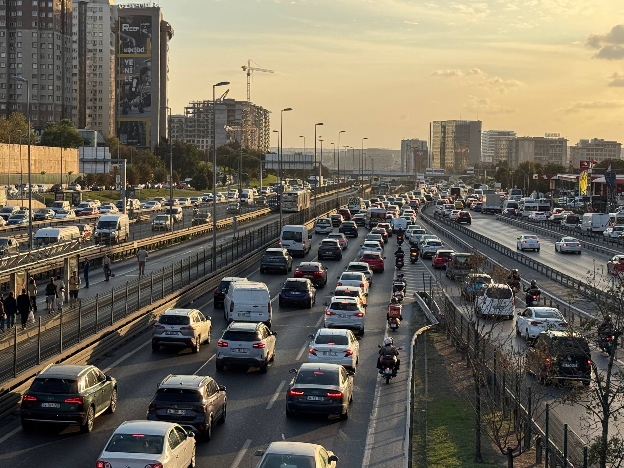 İstanbul Büyükşehir Belediyesinin (İBB) CepTrafik uygulaması verilerine göre, kent genelinde trafik yoğunluğu yüzde 74’e çıktı. Trafik yoğunluğu, Avrupa Yakası’nda yüzde 78’e, Anadolu Yakası’nda ise yüzde 69’a kadar ulaştı.