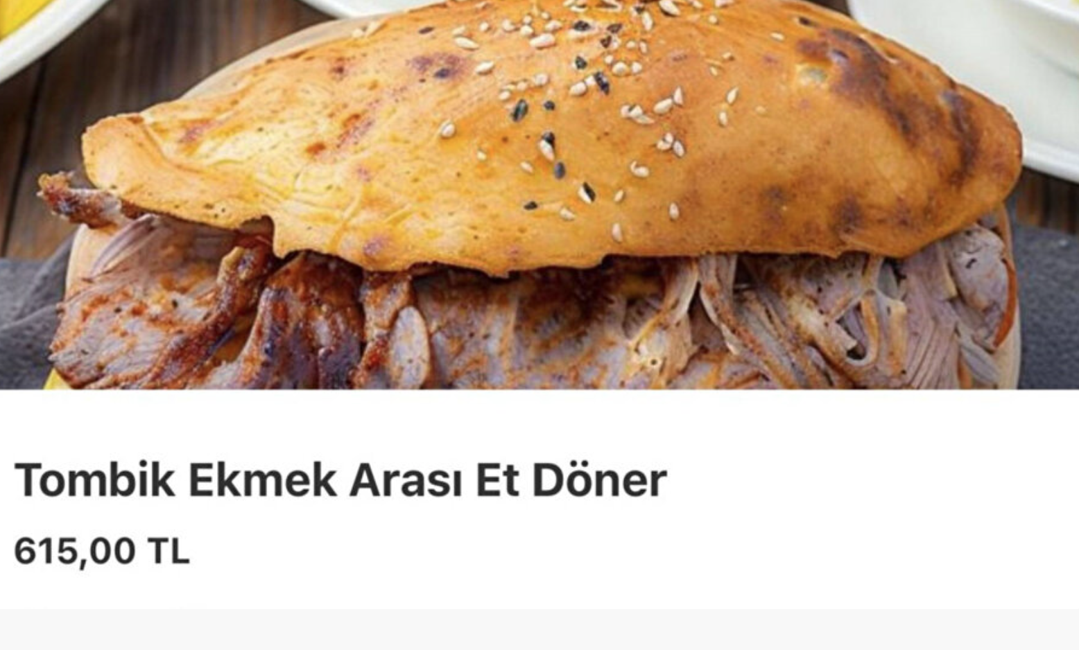 Bir sosyal medya kullanıcısının yaptığı fahiş fiyat paylaşımı sosyal medyada gündem oldu. 80 gram tombik ekmek arası et dönerin satış fiyatını görenler “Yok artık” dedi. Söz konusu dönerin 615 TL’ye satılması tartışmaları da beraberinde getirdi. 80 gram dönerin 1 kilo et fiyatına satılması tepkilere neden oldu.