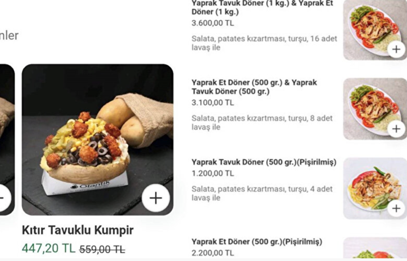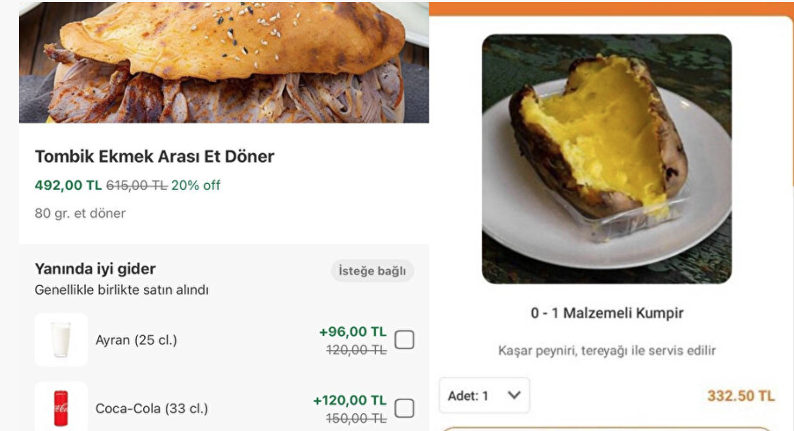 Paylaşımların ardı arkası kesilmezken özellikle yemek sipariş uygulamalarında fiyatların daha da artığı görüldü. İndirim kuponlarıyla vatandaşı çekmeye çalışan restoranların çoğunun piyasanın oldukça üstünde olan ücretleri dikkat çekti.